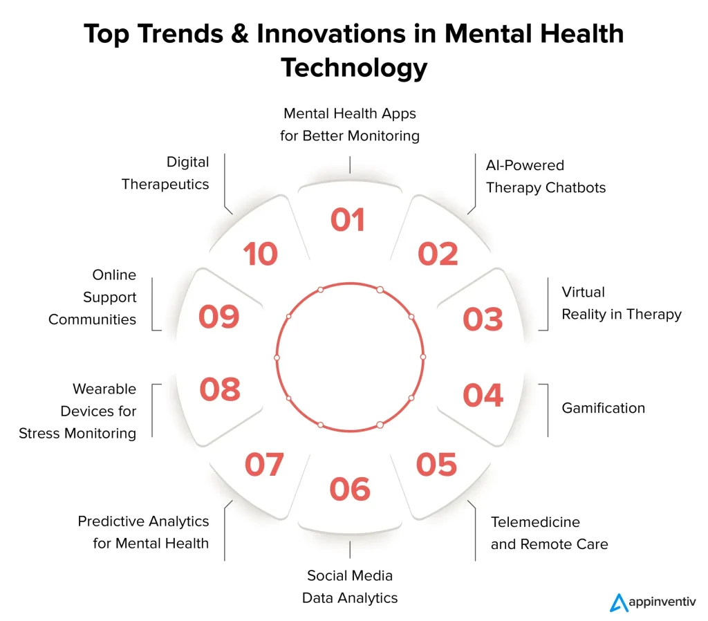3) Innovations in mental health care and digital tools Digital therapeutics, data analytics, mood trackers, CBT apps; wearables and digital journals tailor treatment and track progress; emphasize privacy, security, user-centered design, accessibility; supports self-management and proactive interventions. Note: ethical deployment and effectiveness vary by population.