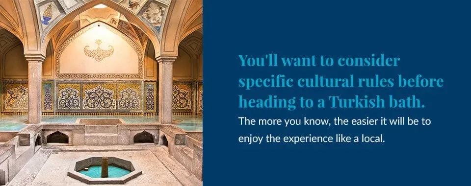 What are Turkish bath rules I should follow for dress, privacy, and photos when visiting a Turkish spa?